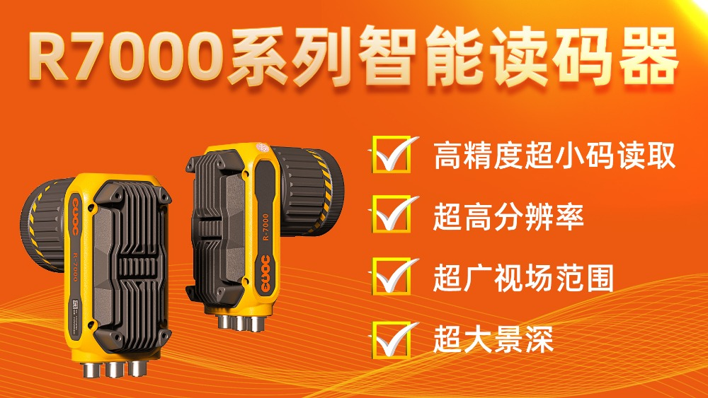 milanCOM米兰milan智能读码器R-7000,是基于图像的扫码技术,支持一键自动变焦,在120 至 2000mm的远距离上,顺利读取密度小于0.064mm二位条码,识读范围可超350mm x 280mm。